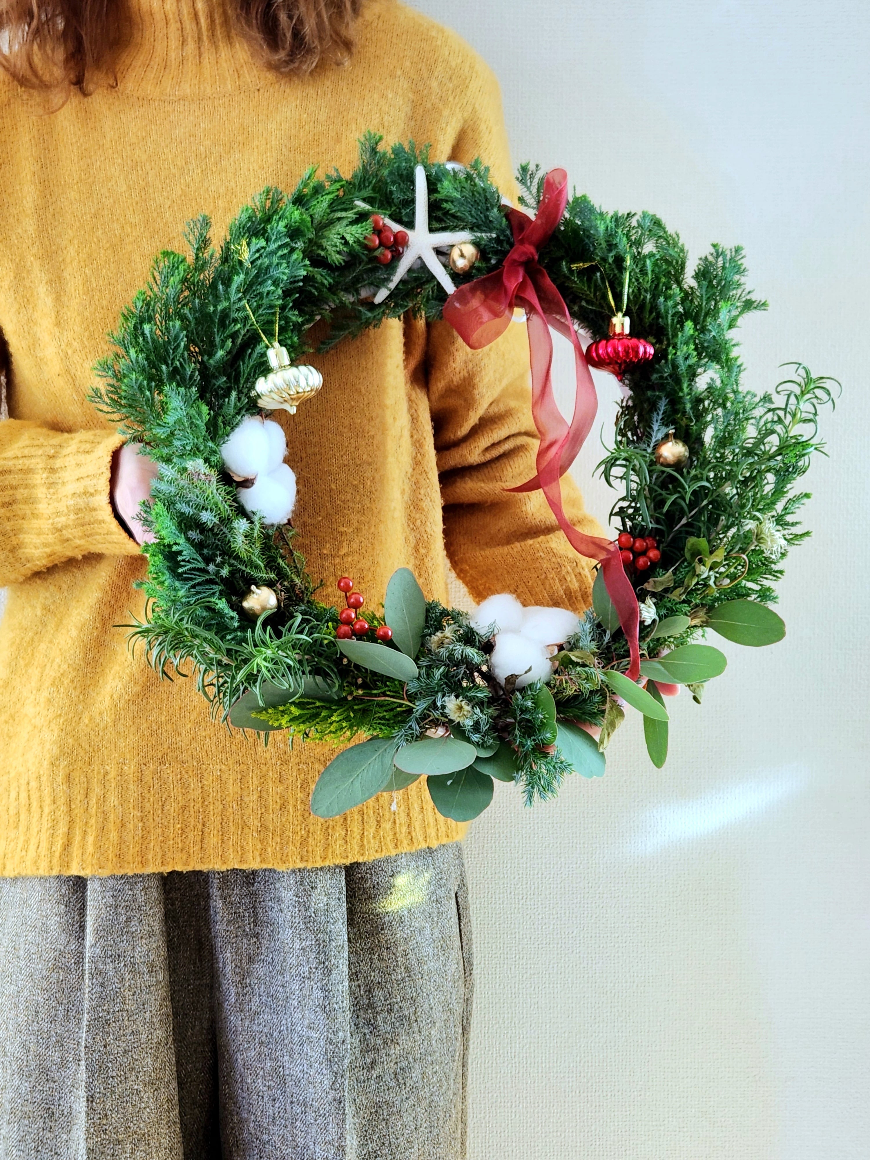 色鮮やかなクリスマスリースに仕上げました